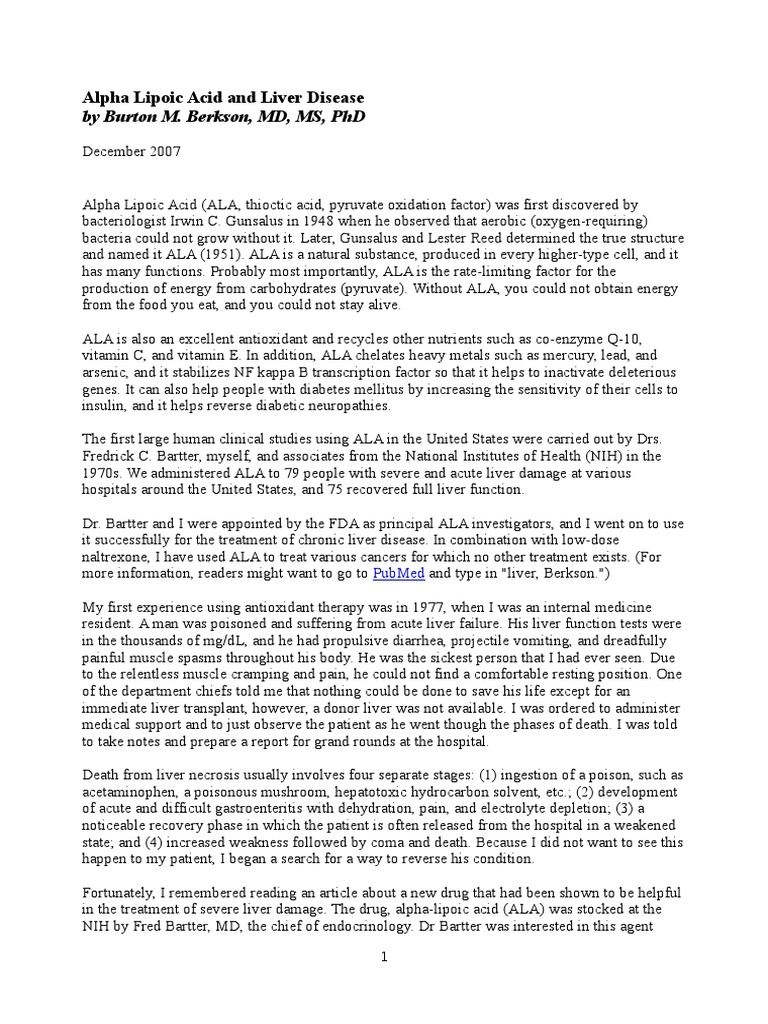 Alpha Lipoic Acid Liver Disease