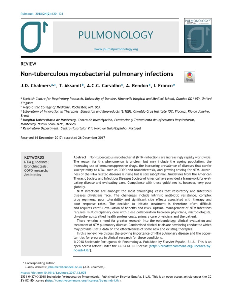 This guideline focuses on pulmonary disease in adults without cystic fibrosis or human immunodeficiency virus infection caused by the most common NTM pathogens such as. For appointments or more about the Mycobacterial and Bronchiectasis Clinic at Mayo Clinics campus in Minnesota call the Division of Pulmonary and Critical Care Medicine at 507-284-2079 or the Center for Sleep Medicine at 507-266-7456 from 8 am. This review will utilize essential questions about nontuberculous mycobacterial NTM lung disease to succinctly address important new developments in the pathogenesis diagnosis and management of NTM lung disease with a focus on practical information and bottom line answers.