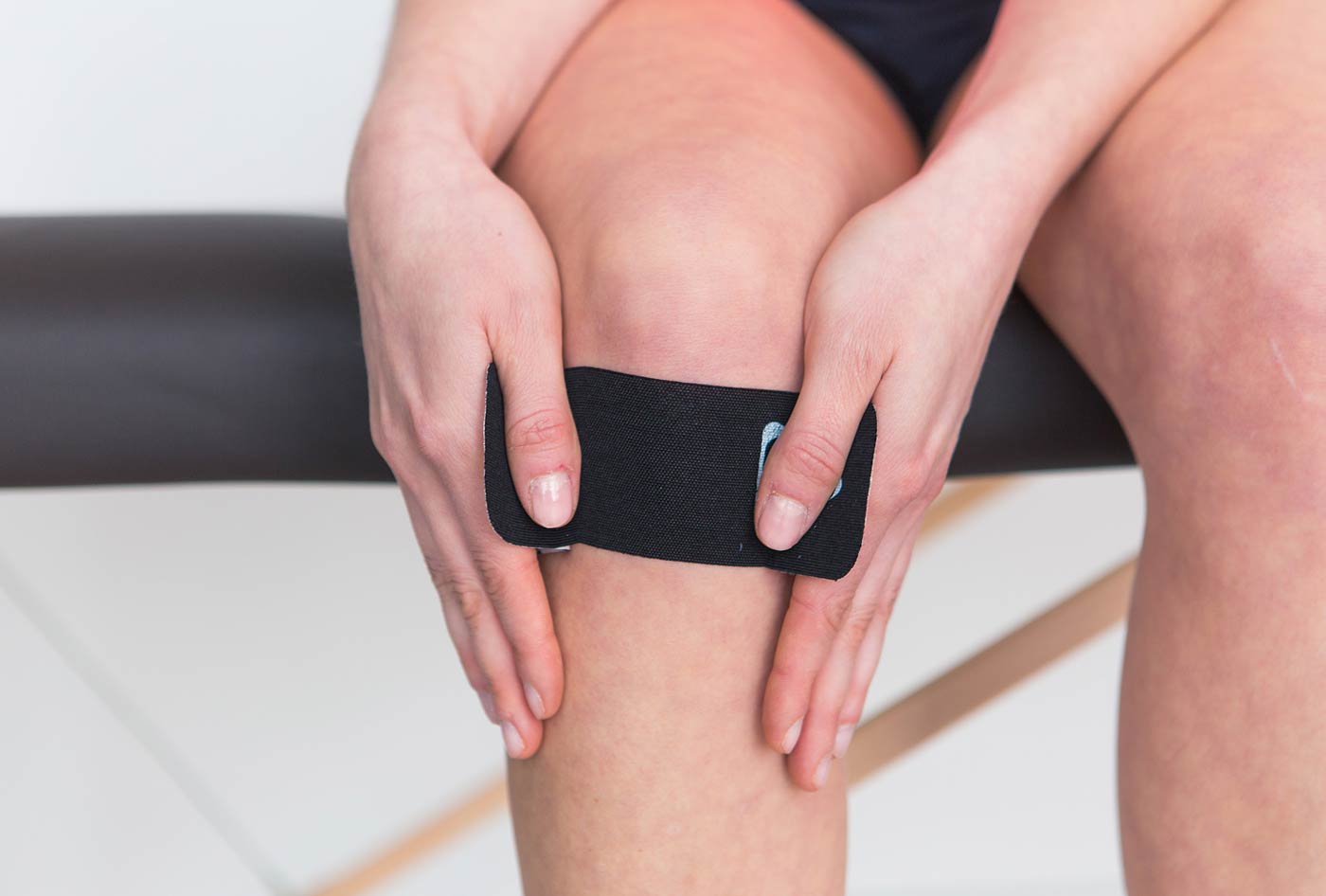 Für bessere Haftung bei starker Behaarung die Haare trimmen. Kinesio-Tape am Knie kleben Birgit KlemtFIT FOR FUN a Setze dich bequem auf einen Stuhl das gestreckte Bein leicht anwinkeln. Komplette Kinesiologie-Tape Anleitung von B.