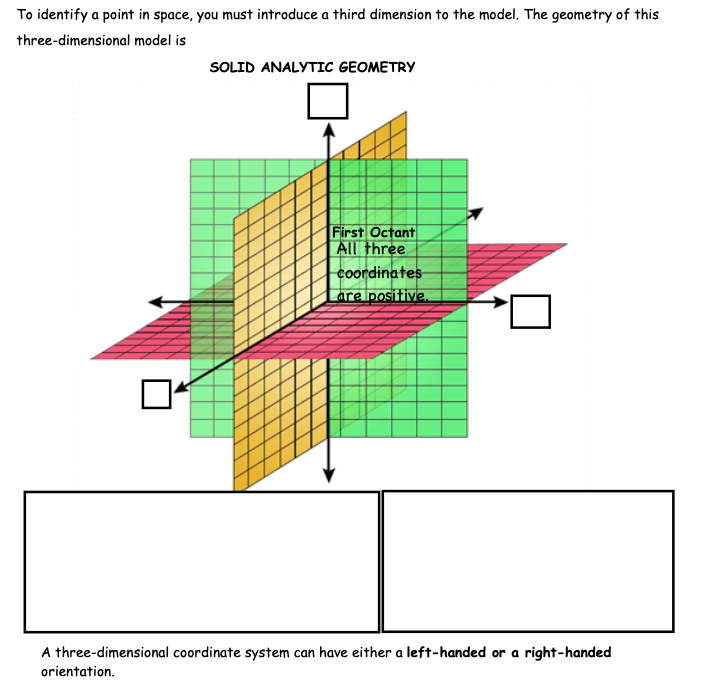 Each pair of axes defines a coordinate plane. K ɑː ˈ t iː zj ə n US. Just as the two-dimensional coordinates system can be divided into four quadrants the three-dimensional coordinate system can be divided into eight octants.